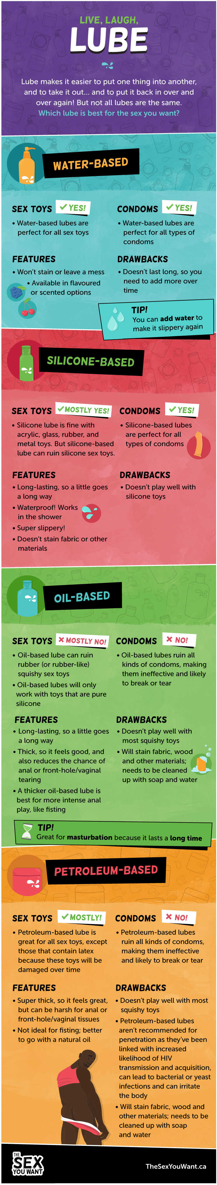 Lube makes it easier to put one thing into another, and take it out…and to put it back in over and over again! But not all lubes are the same. Which lube is the best for the sex you want?