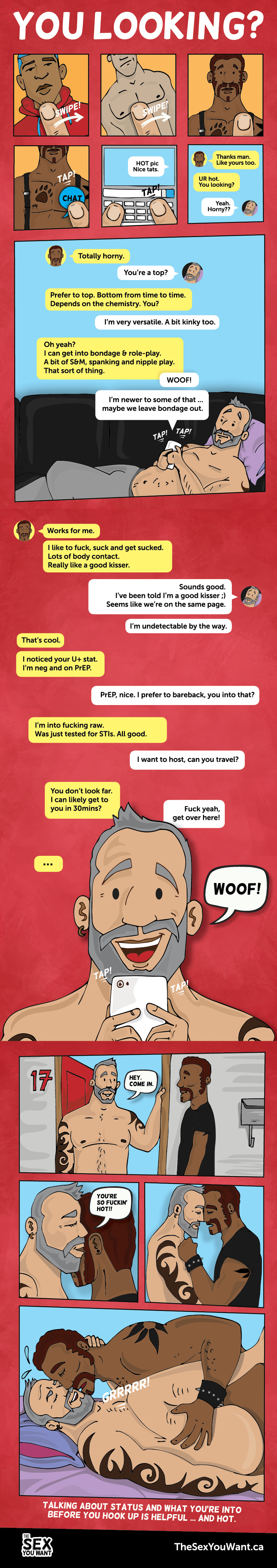 Sometimes talking about the way HIV or STIs are transmitted, or a recent study or statistic you’ve seen can be a way of talking about the sex you want without making it seem so immediate.